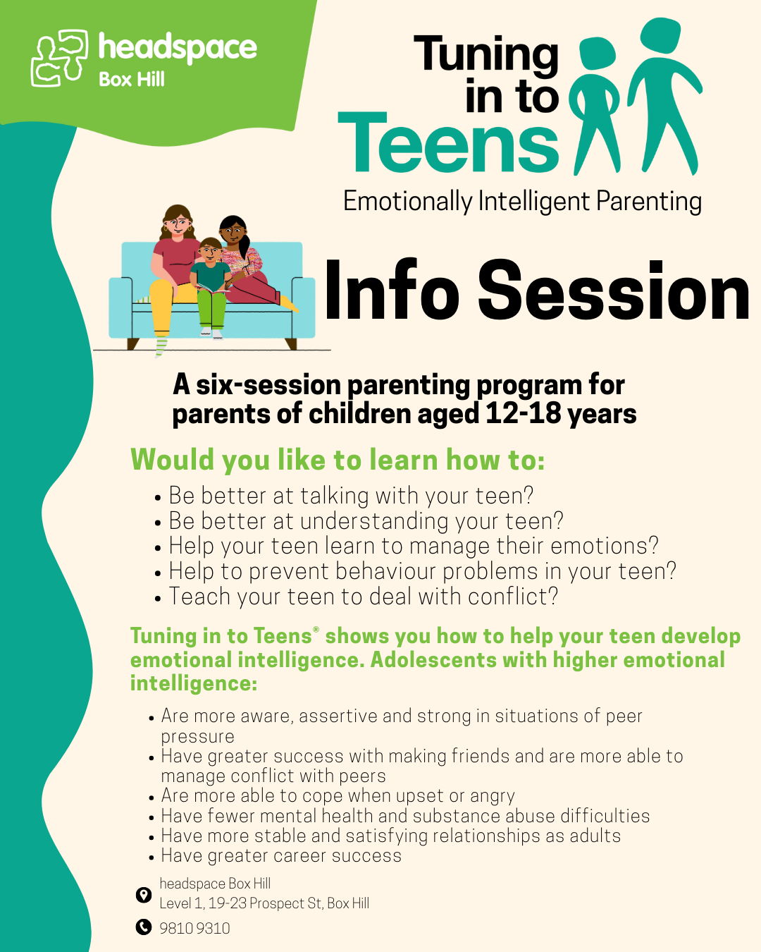 Thank you for your interest in our Tuning In To Teens Program presented by headspace Box Hill in term 1.